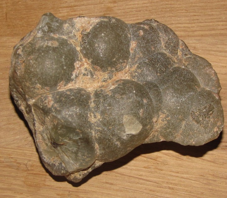 La prehnite est un minéral hydrothermal secondaire qui se forme généralement dans des fissures et autres cavités des roches éruptives basiques et schistes cristallines.